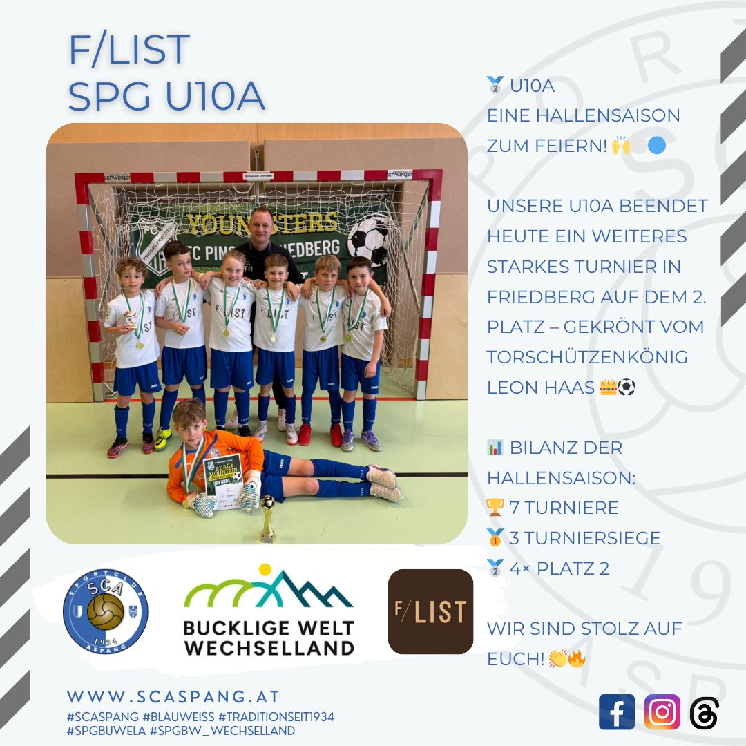 Unsere U10A beendet heute ein weiteres starkes Turnier in Friedberg auf dem 2. Platz – gekrönt vom Torschützenkönig Leon Haas ![]()