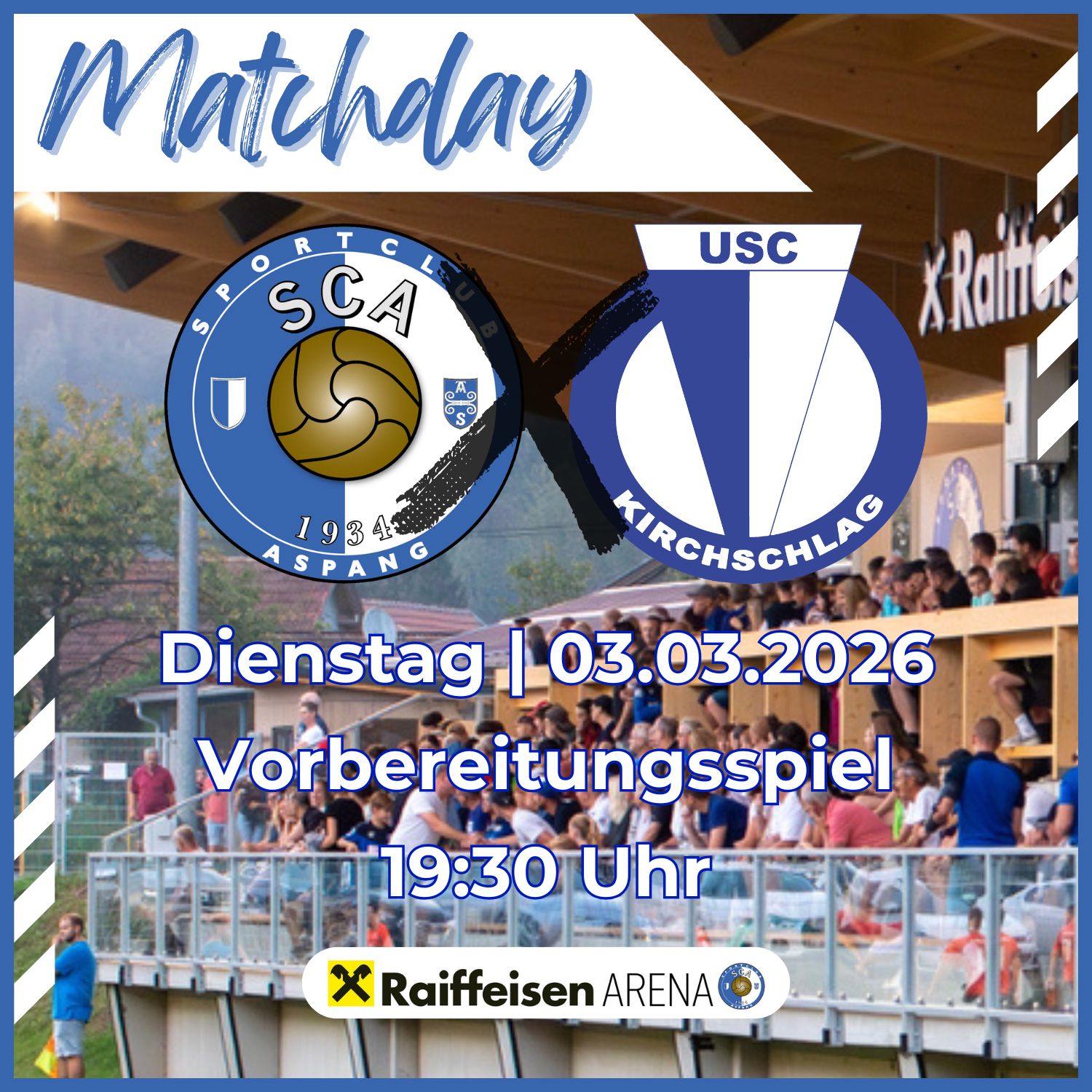 Vorbereitung in ASPANGKurzfristiges Spiel in ASPANG gegen den USC Kirchschlag - Kantine GEÖFFNET.👉 SC Aspang - USC Kirchschlag🏆 Vorbereitung📅 Di, 03.03.2026⏰ KM 19:30 Uhr📍 Raiffeisen Arena Aspang